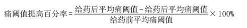 2. 熱板法:將恒溫水浴箱加熱到(55±0.5)℃,燒杯底部接觸水面,加熱后作為熱刺激,用秒表記錄小鼠自投入熱板至出現(xiàn)舔后足的時(shí)間(s)作為該鼠的痛閾值。在給藥前測(cè)定每只小鼠的痛閾值,剔除喜跳躍者,以>10s而<30s的小鼠為合格。將篩選合格的小鼠(全部為雌性)禁食12h后(不禁水),隨機(jī)分為6組,生理鹽水(NS)空白對(duì)照組給予生理鹽水 0.5ml/20g;落新婦組0.5ml/20g。給藥后45min左右測(cè)定痛閾值,按公式計(jì)算其痛閾值提高百分率。