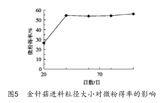 2. 金針菇進料粒徑大小對超微粉碎的影響