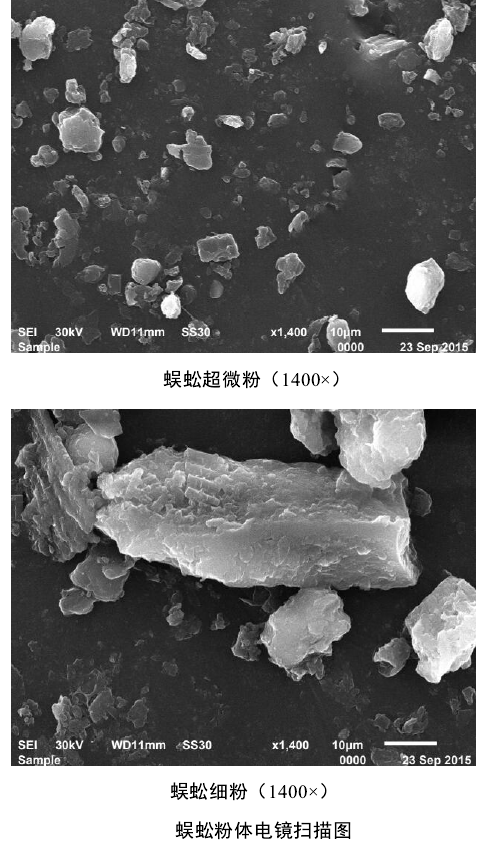 2. 蜈蚣超微粉、細粉的顯微形貌比較觀察