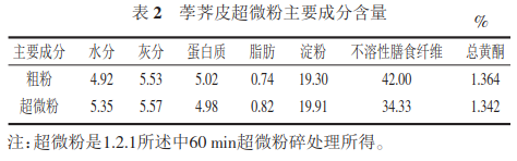 2.超微粉碎對荸薺皮主要成分含量的影響