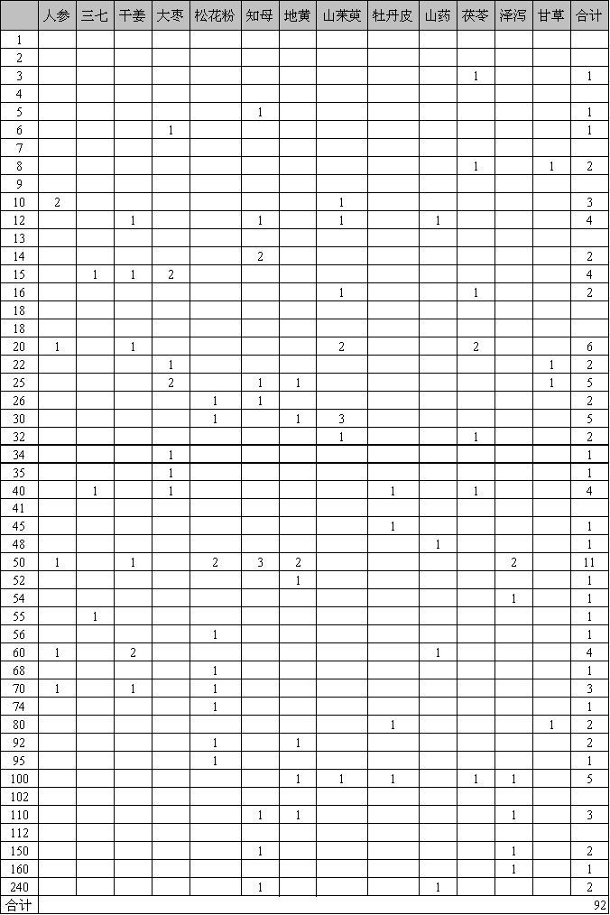 在《中醫(yī)歷代名方集成》中的711首內(nèi)服中藥方劑中,散、丸、丹劑有194首,占20%,丸(散)湯共用的方劑有267首,占34.6%,散、丸、丹劑和散、丸劑與湯劑共用的累積為461首,占64.8%。