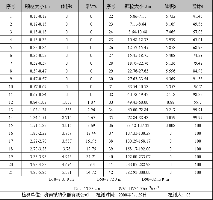 用激光粒度儀(分散介質(zhì)為酒精)對其粒度分布進行檢測得到結(jié)果:表4
