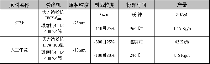 如前述人工牛黃的例子;原粉碎混煉工藝是:原料+溶劑進行混勻→真空干燥10小時→破碎→球磨機粉碎混煉24小時→出料;采用天方微粉機的工藝是:原料干法初混20分鐘→天方微粉機研
