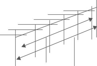 為了能在估計細胞破壁率時有一個定性的認識,對粉碎對象做了一個抽象的破碎模型。假定破碎對象由尺寸均一的正方體單元組成,破碎從單元體中間穿過,不是沿單元間結(jié)合面破碎(這個假設是符合細胞組成的物體破碎時薄弱環(huán)節(jié)分析的),這樣邊長為n個單元組成的破碎對象,必然是,完整單元有n-1個,兩邊1/2個單元。本節(jié)的計算只能對生物體粉碎過程中的破壁率有一個定性認識和大體上量的估計,由于細胞形狀和尺寸多樣性不可能以此做精確的生物破壁率計算。模型見圖3理想破碎模型簡圖