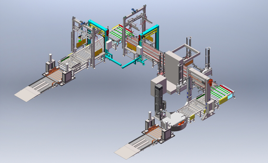 為提高生產(chǎn)效率及解放人工,小黃蜂為亞旭電子設(shè)計了一條后段全自動流水線。此次項目,小黃蜂S300在線式智能纏繞機(jī)、覆頂膜機(jī)攜手專注智慧打帶包裝解決方案的麥斯泰克打包機(jī)共同打造該流水線。