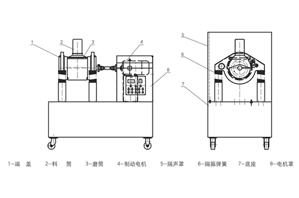 該設(shè)備采用振動粉碎的工作原理,在磨筒(粉碎室)中裝填一定量的研磨介質(zhì),如硬質(zhì)材料材料的球、棒或柱,磨筒在外加激振力的作用下產(chǎn)生順逆時針方向的圓振動。磨筒的強(qiáng)烈振動使磨筒內(nèi)的介質(zhì)產(chǎn)生拋擲運(yùn)動,在此拋擲運(yùn)動的作用下,使每個介質(zhì)都產(chǎn)生了與圓振動同向的旋轉(zhuǎn)運(yùn)動,與此同時,介質(zhì)群也產(chǎn)生3-5周與圓振動反向的低頻公轉(zhuǎn)運(yùn)動。于是介質(zhì)時而散開,時而互相沖撞,對物料產(chǎn)生正向沖擊力和側(cè)向剪切力。物料在P、L作用力的撞擊、壓縮和剪切作用下被研細(xì)、破壁粉碎。